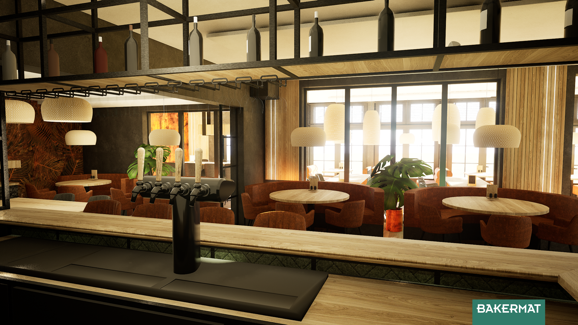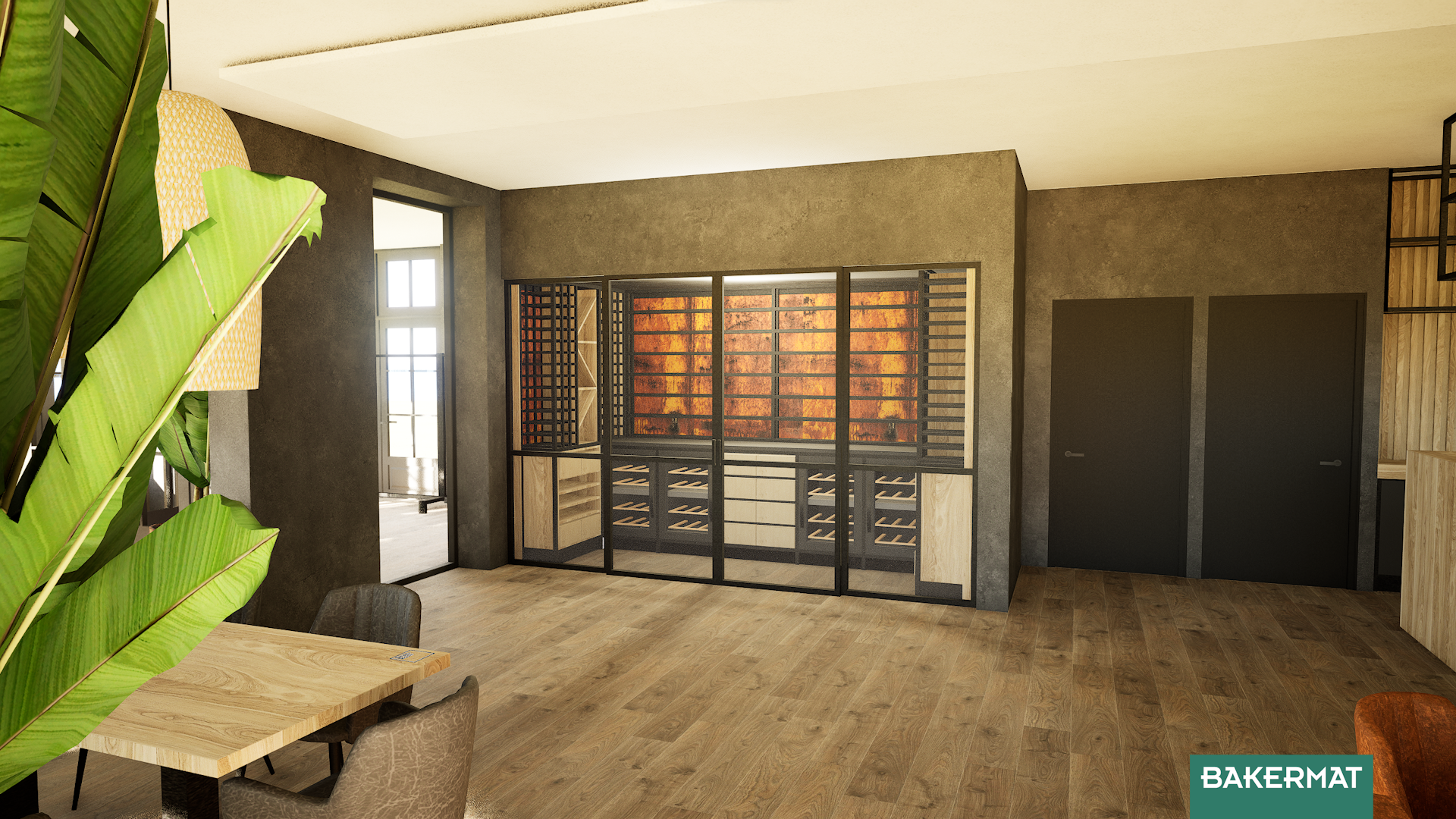 At the entrance of Braskoer, you will find a striking built-in wine cabinet on the left side. This wine cabinet serves not only a functional purpose but also acts as an attractive artistic element that immediately sets the tone for the unique ambiance at Braskoer. In addition to the built-in wine cabinet, there is a bar. The spatial layout of the restaurant has been carefully considered to achieve a perfect balance between the number of available seats and the overall atmosphere.